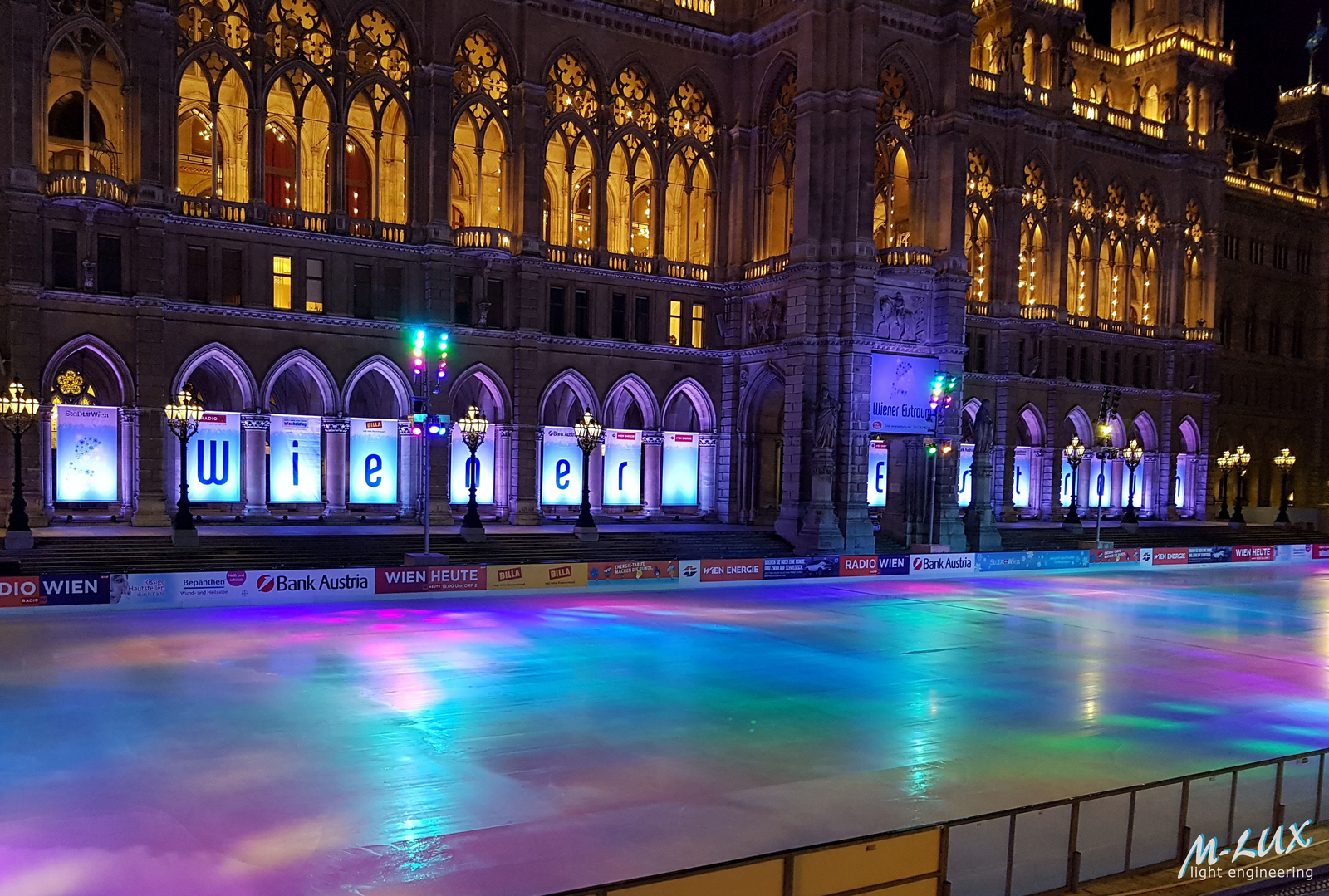 Das jährliche Eislaufvergnügen vor dem Rathaus in Wien wird durch das zauberhafte Farbspiel der Beleuchtung zu einem unvergesslichen Erlebnis!